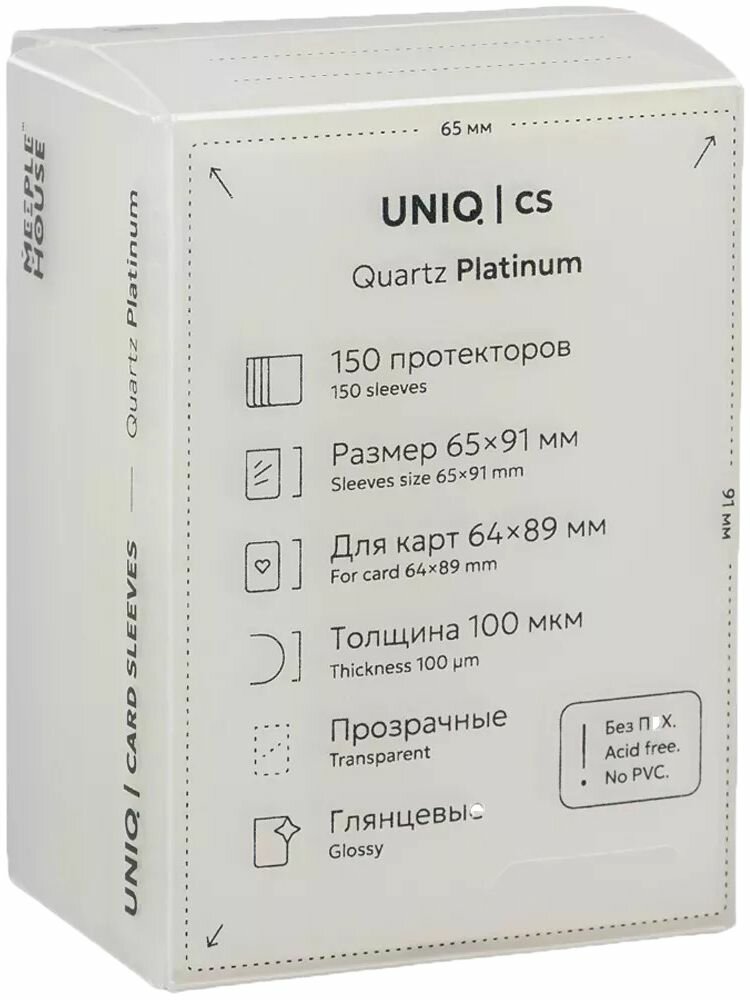 Купить Протекторы Meeple House UniqCardSleeves Quartz Platinum Pack (размер 64x89 мм) 150 шт: стандарт прозрачные