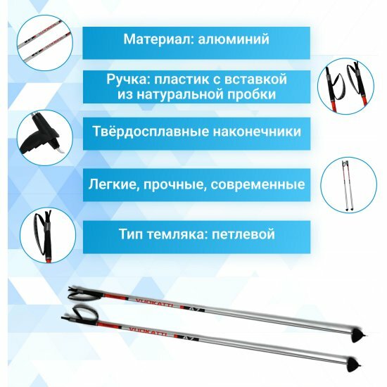 Лыжные палки беговые VUOKATTI Black Red ALU 140 см алюминиевые спортивные интересное: