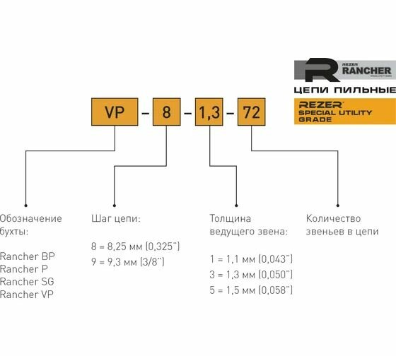 Цепь пильная Rancher BP-8-толщина 1,5-66 зв., шаг цепи - 0,325" Rezer