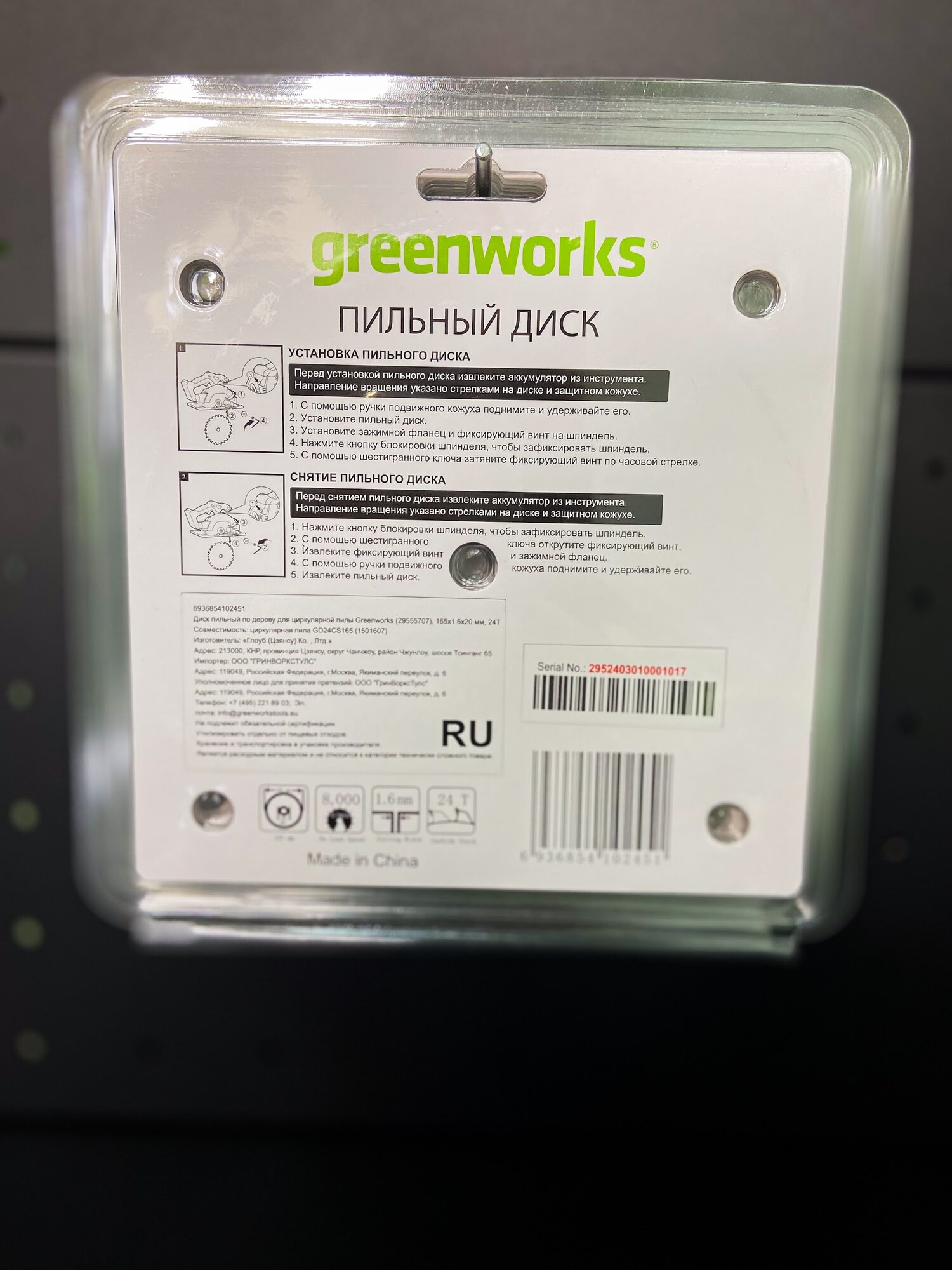 Диск пильный 165 х 20 мм, 24 зуба GREENWORKS, 2955707 интересное: