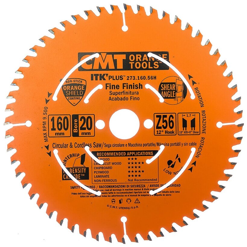 Диск пильный 160x20(+16)x1,7/1,1 12° 10° ATB + 8° SHEAR Z=56 CMT 273.160.56H