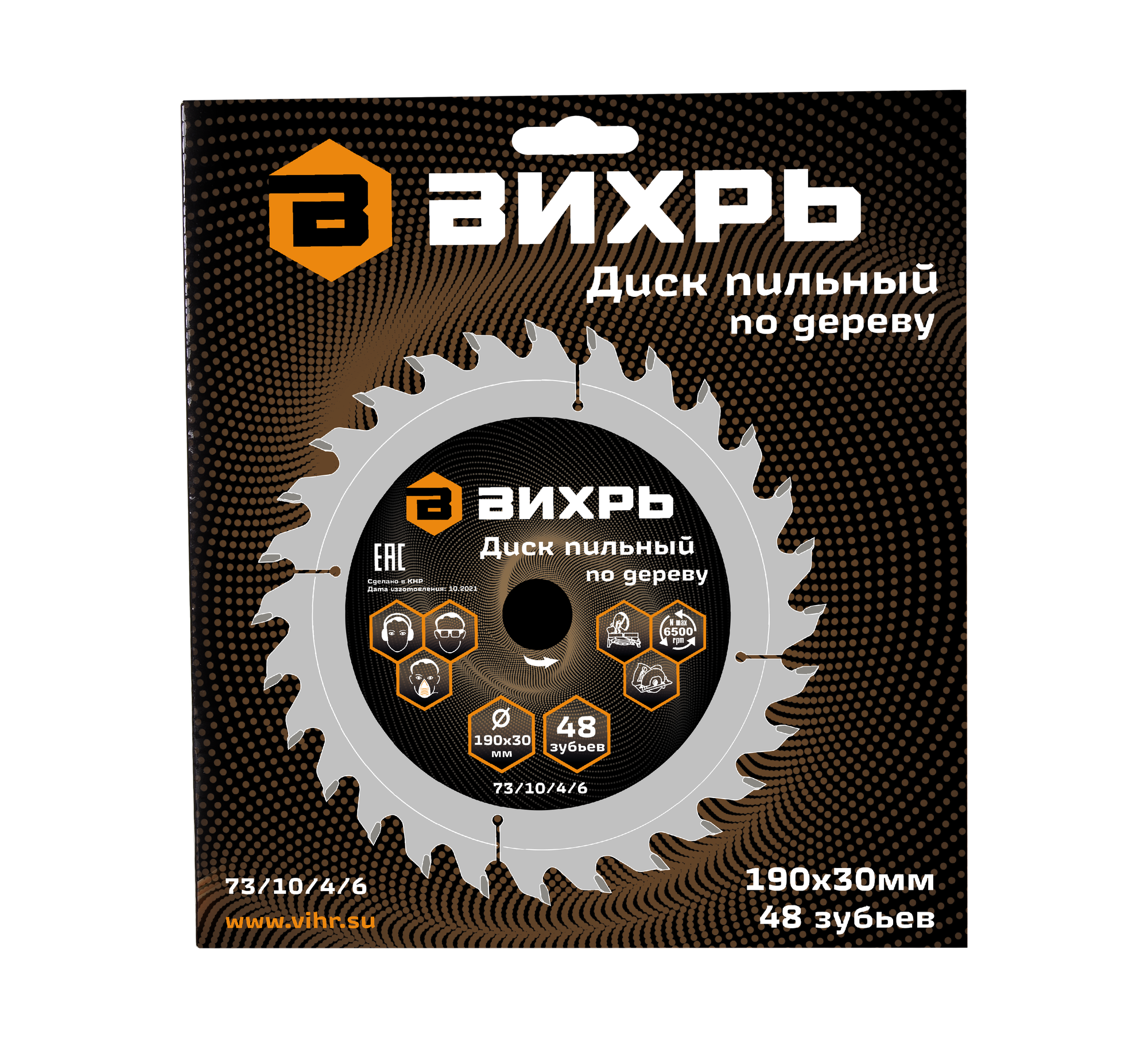 Пильный диск по дереву Вихрь 190х30 мм, 48 зубьев, 73/10/4/6