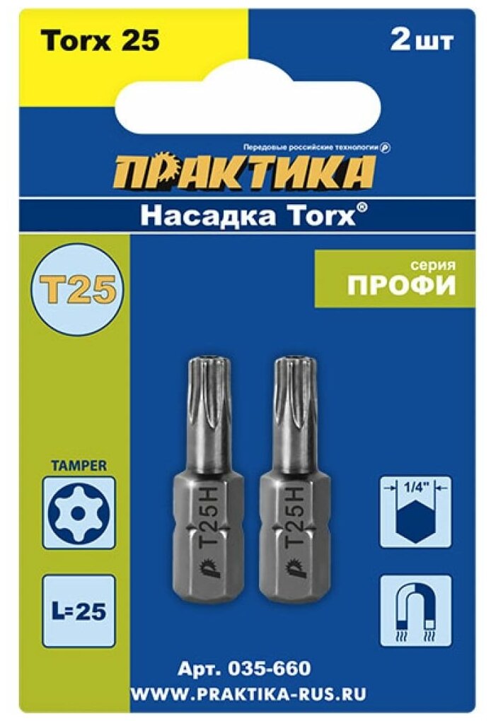 Бита отверточная ПРАКТИКА профи TORX T25 х 25 2шт интересное: