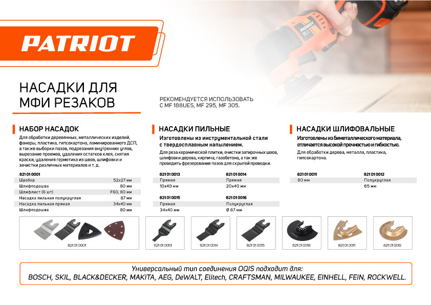 Ниже Вы можете прочитать отзывы на Насадка пильная Patriot 34х40 мм, для многофункциональных резаков, биметаллическая, прямая (821010015), ознакомится с подробными характеристиками, посмотреть интересные обзоры и фотографии на Насадка пильная Patriot 34х40 мм, для многофункциональных резаков, биметаллическая, прямая (821010015).