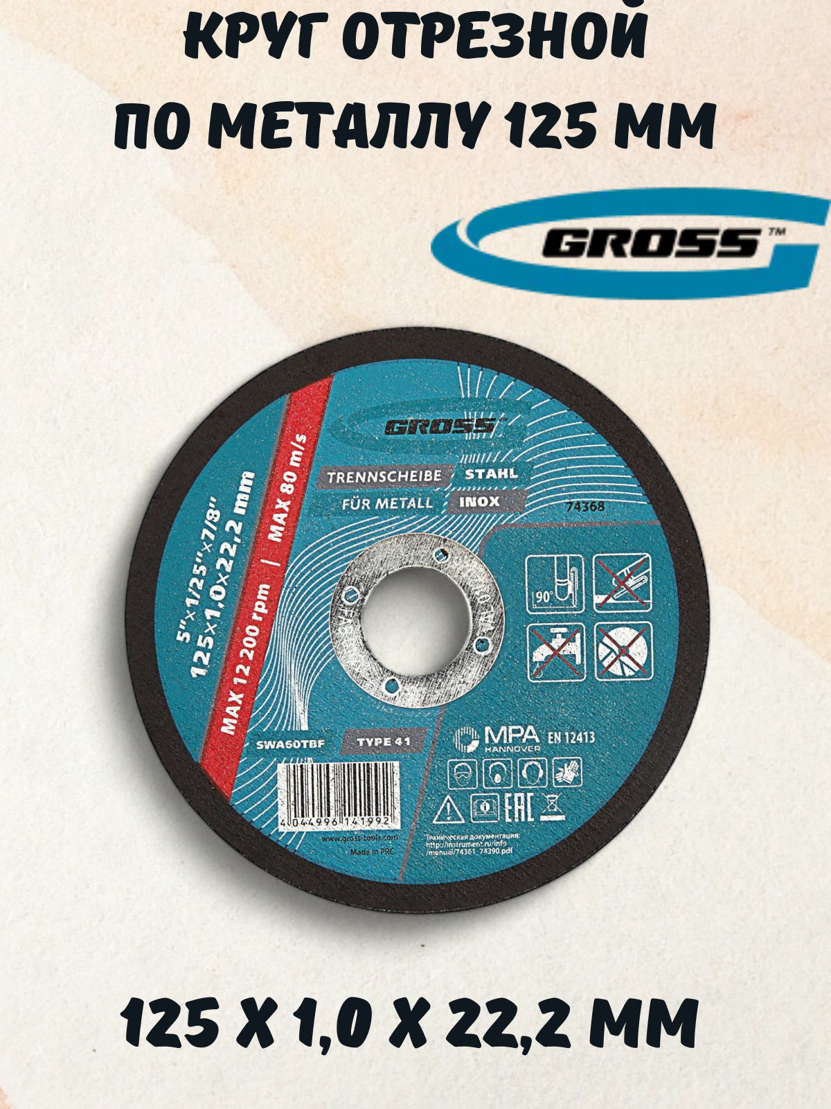 Круг отрезной по металлу (125х1х22.2 мм) GROSS 74368 интересное: