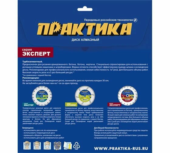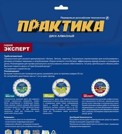 СохранитьДиск алмазный турбосегментный ПРАКТИКА "Эксперт-бетон" 150 х 22 мм, сегмент 10мм (1 шт.) коробка (150х22мм, 10мм, коробка) интересное: