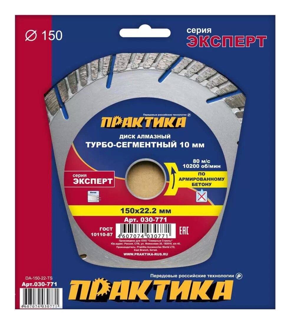 Диск алмазный турбосегментный ПРАКТИКА "Эксперт-бетон" 150 х 22 мм, сегмент 10мм (1 шт.) к (030-771)