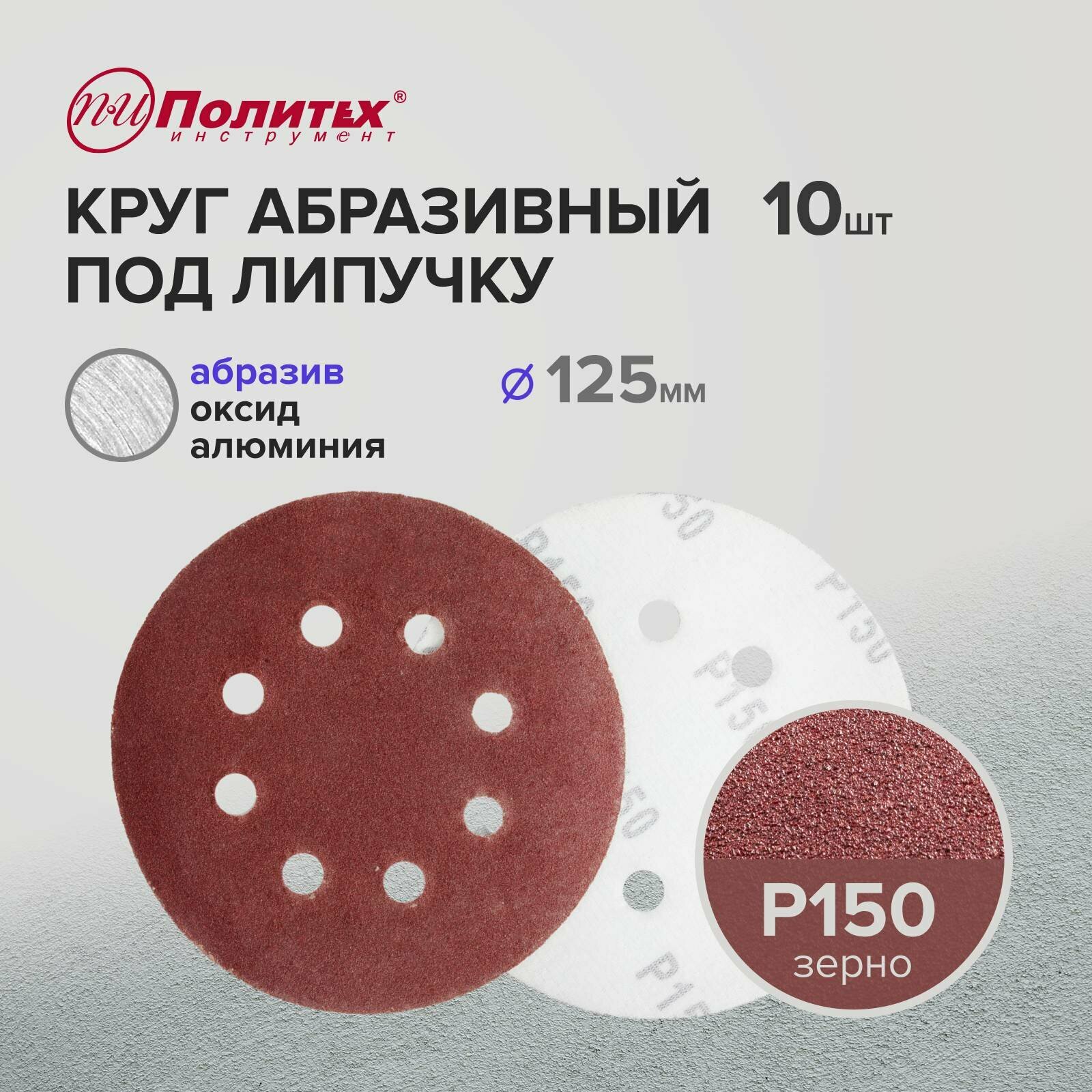 Купить Шлифовальные круги 125 мм для липучки перфорированные Р150, комплект 10 шт