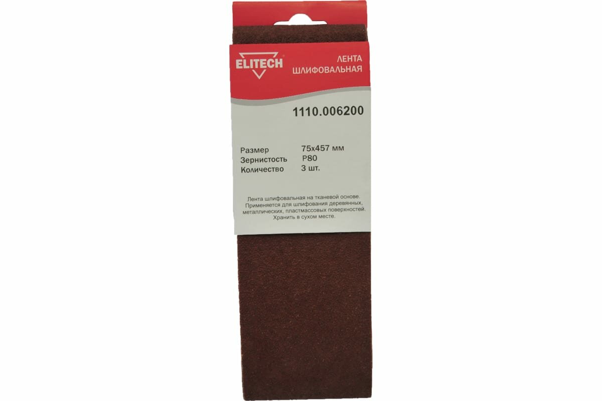 Купить Лента шлифовальная Elitech 1110.006200, 75х457 мм, Р80, 3 шт. в упаковке