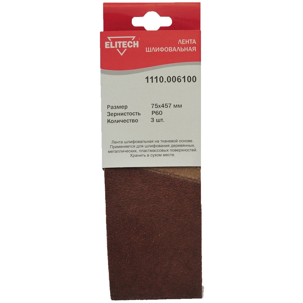 Лента шлифовальная Elitech 1110.006100, 75х457 мм, Р60, 3 шт. в упаковке интересное: