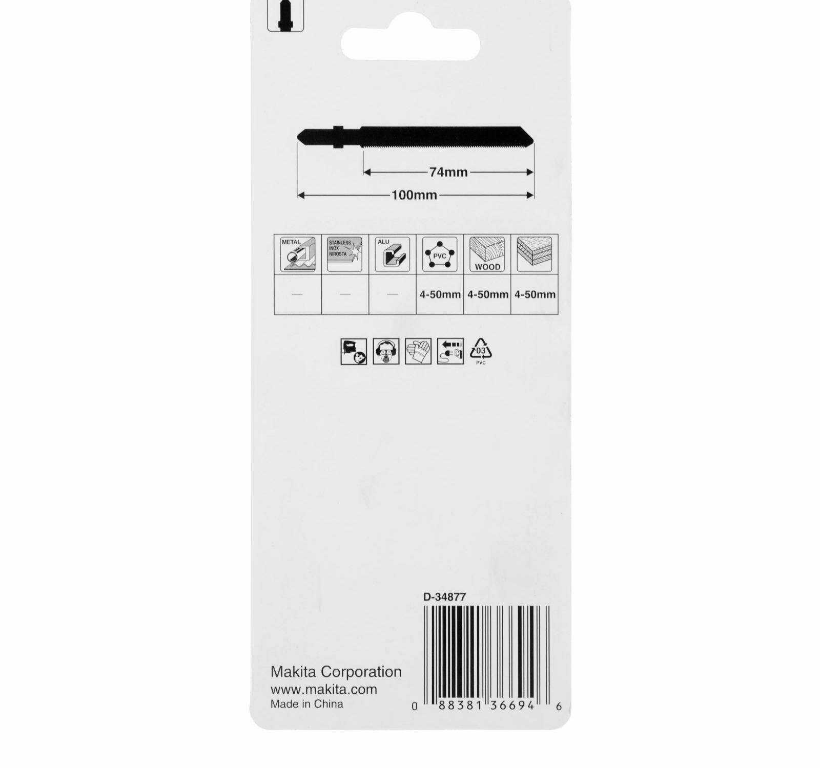 Пилка для лобзика Makita Fast по дереву 100х1.2х6TPI, 5 шт D-34883