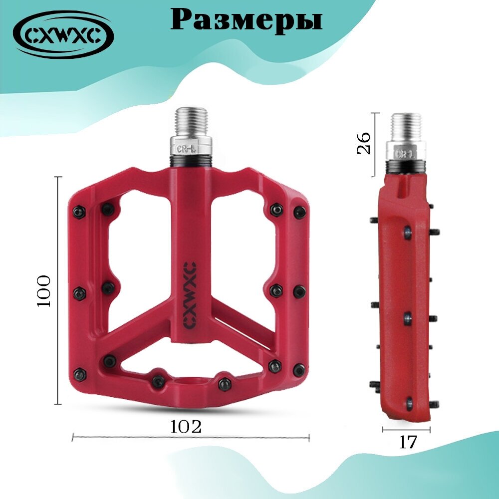 Педали для велосипеда с 3 подшипниками CXWXC, с шипами, красные, нейлон интересное: