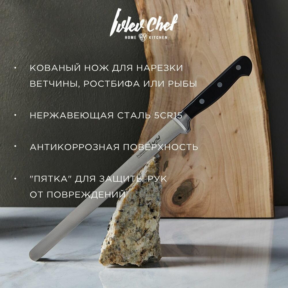 СохранитьIvlev Chef Profi Нож кухонный для ветчины 30,5см, кованый, нерж.сталь 5Cr15 интересное: