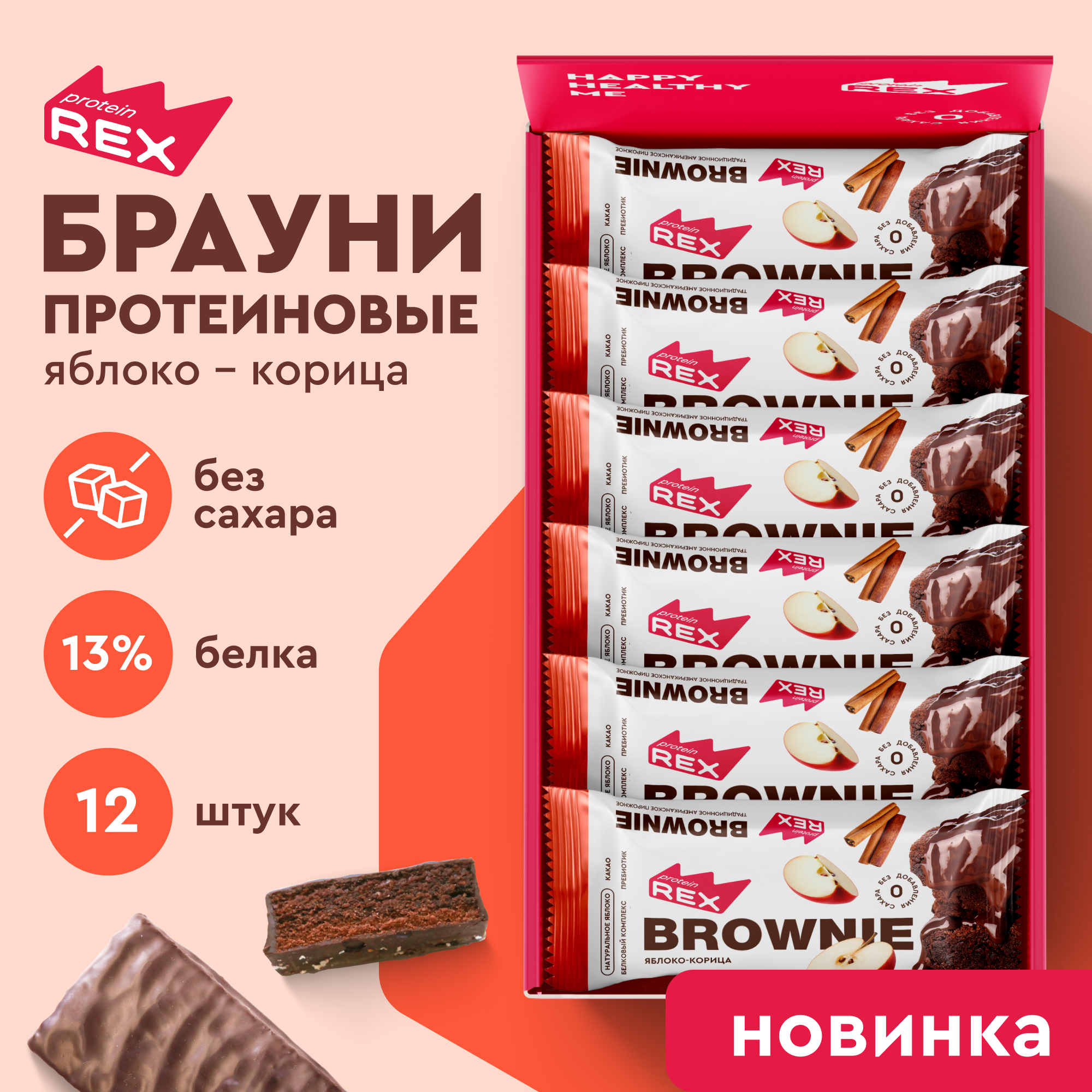 Купить Протеиновое печенье без сахара Брауни ProteinRex Яблоко-корица 12 шт х 50 г, спортивное питание