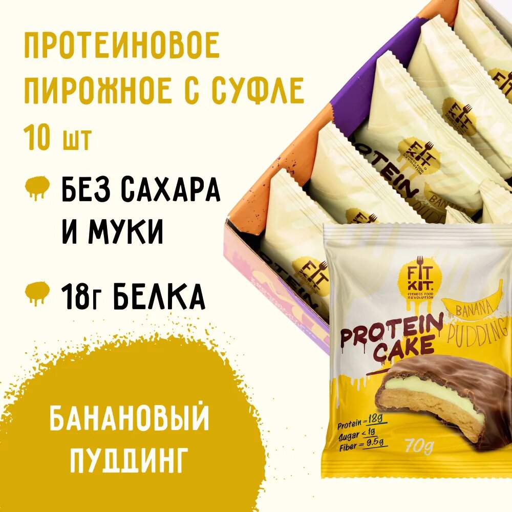 СохранитьПеченье FITKIT Protein Cake, 1680 г, банановый пудинг интересное: