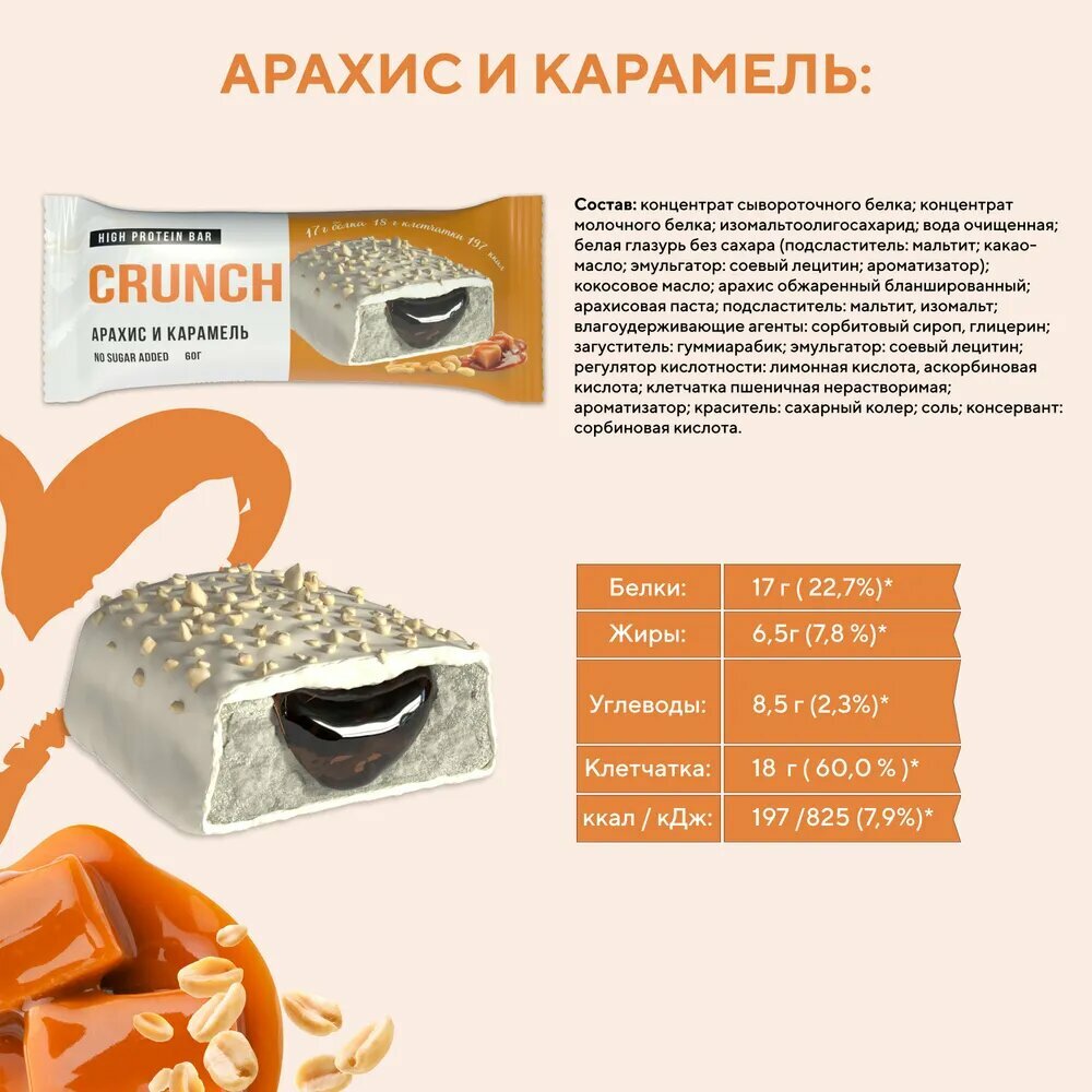 Купить Протеиновый батончик BOOTYBAR Crunch, Карамель и арахис, 16 шт по 60 г