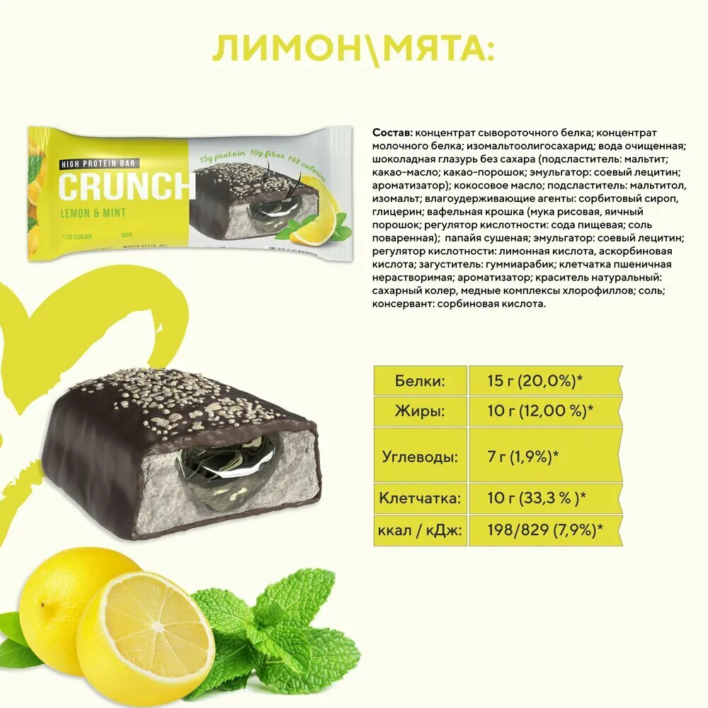 Протеиновый батончик Crunch 16 шт 60 гр (BootyBar) Лимон и мята