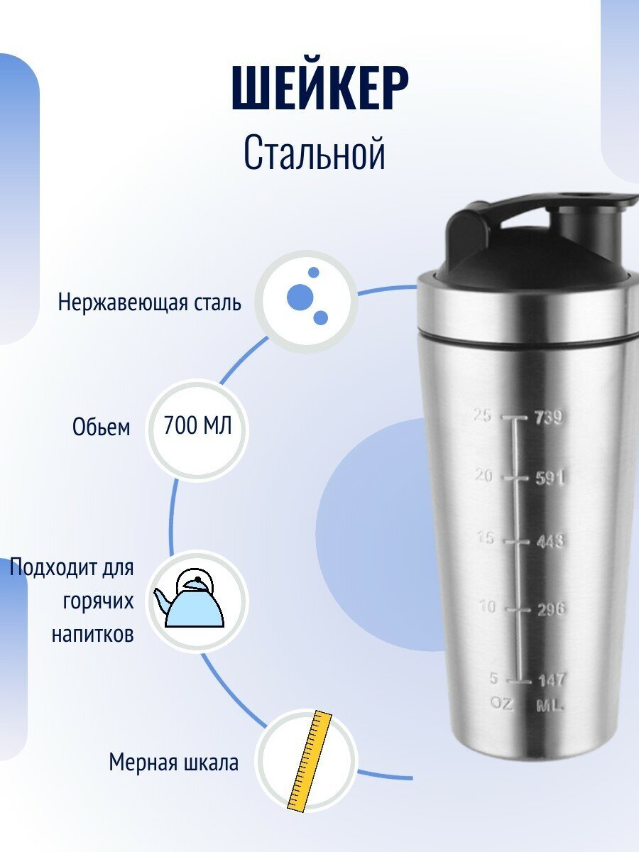 Шейкер спортивный металлический с венчиком стальной для спортивного питания интересное: