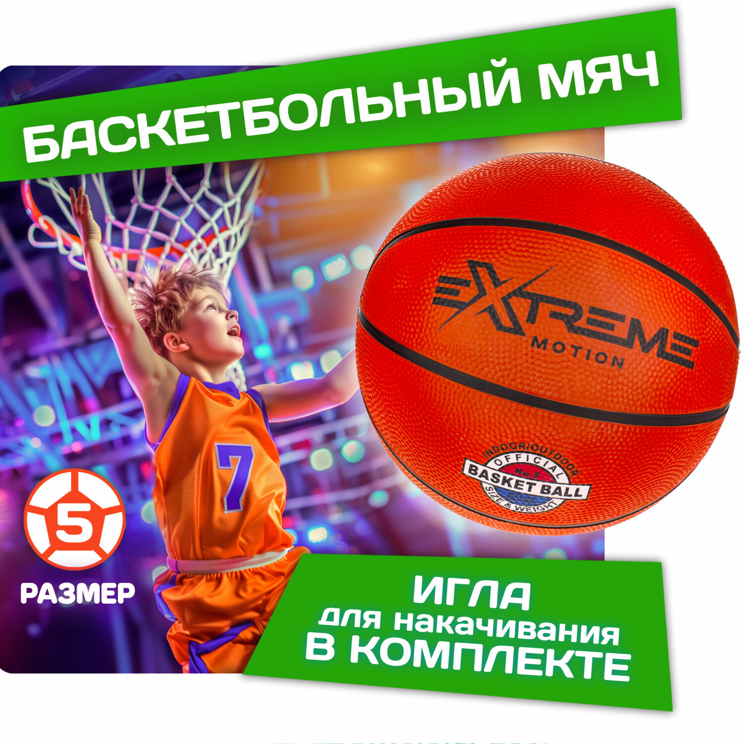 Мяч баскетбольный 1TOY, 5 размера, игрушки для улицы, 1шт, в ассорименте