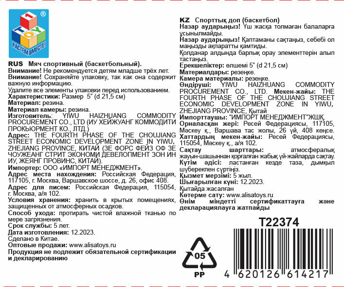 1toy мяч баскетбол, размер 5, резина, с печатью, пакет