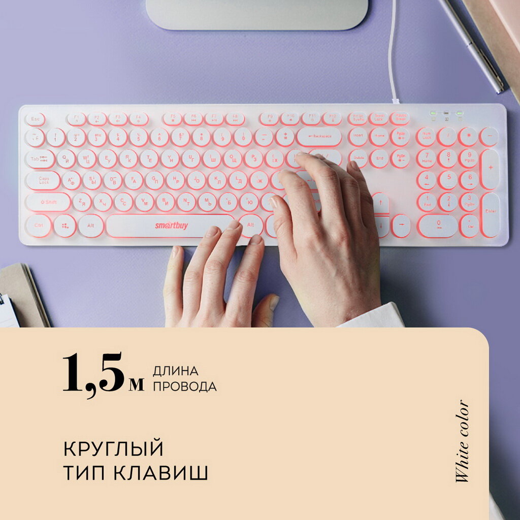 Клавиатура Smartbuy 328 USB белая с подсветкой (SBK-328U-W) интересное: