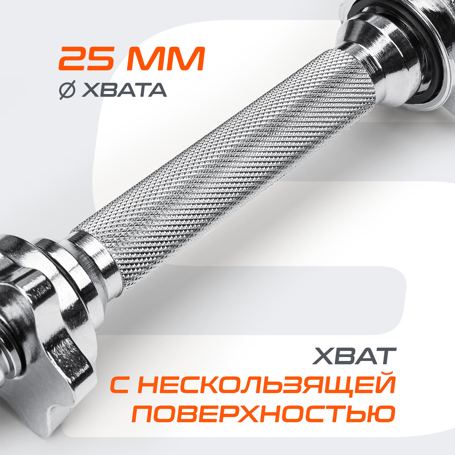 Гриф гантельный STARFIT Core BB-107 35 см, d=25 мм, металлический, хромированный