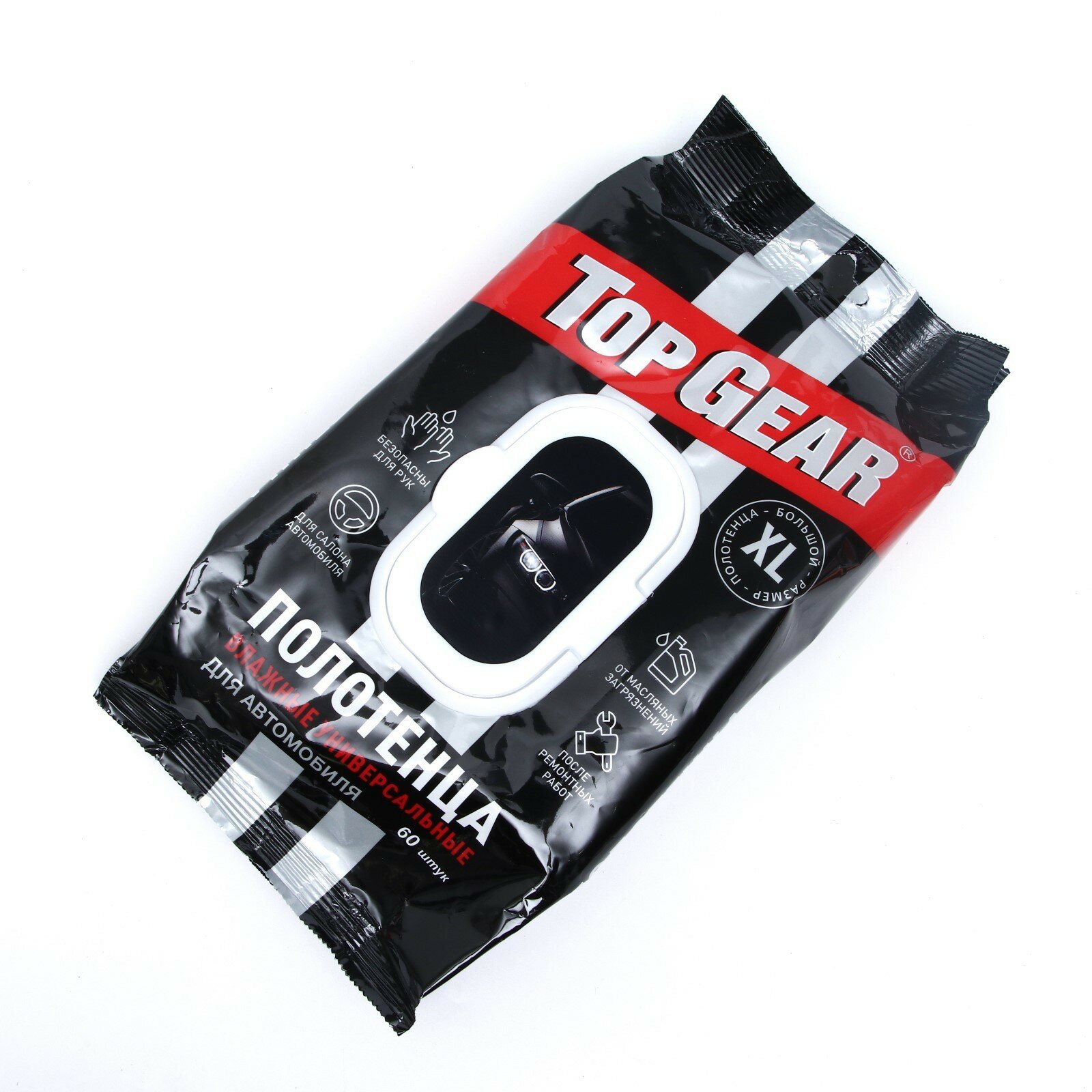 Влажные полотенца Top Gear Универсальные, автомобильные, с клапаном, 60 шт