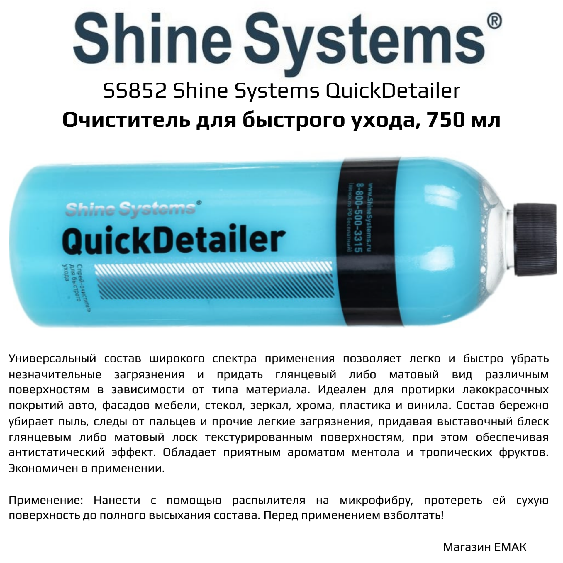 Shine Systems QuickDetailer — спрей-очиститель для быстрого ухода 750мл.