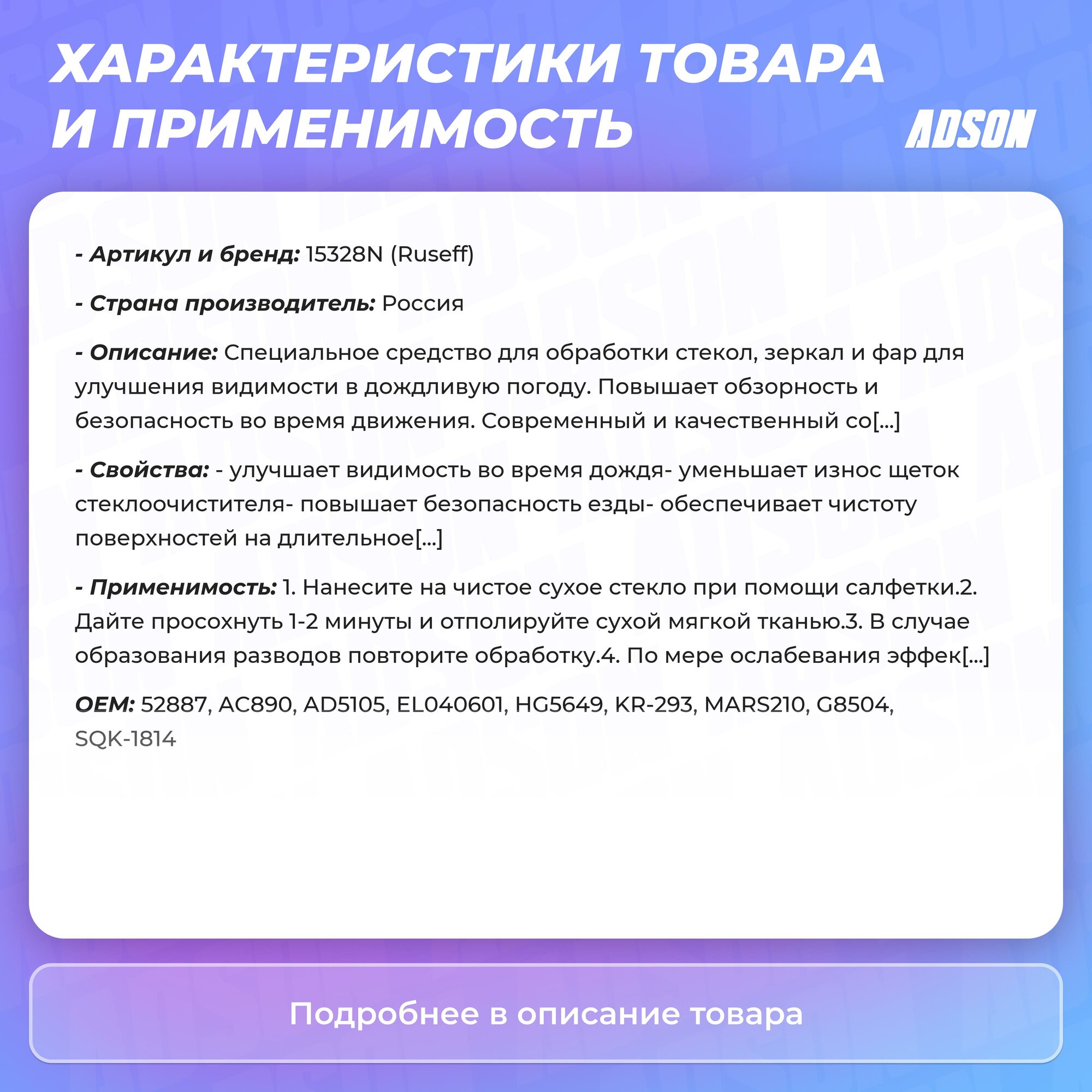 Антидождь 250 Мл RUSEFF арт. 15328N интересное: