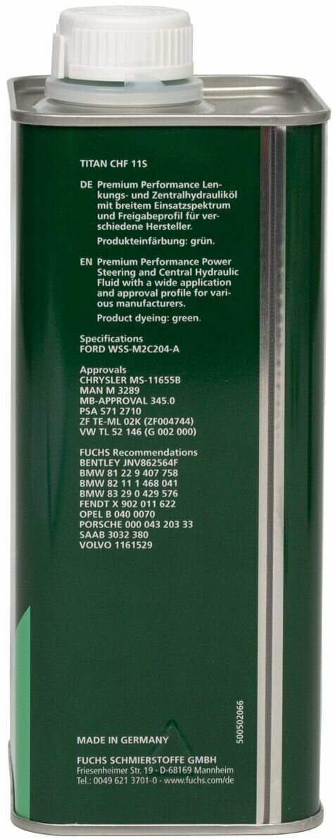 Жидкость ГУР зеленая Fuchs TITAN CHF 11S 83290429576 1л интересное: