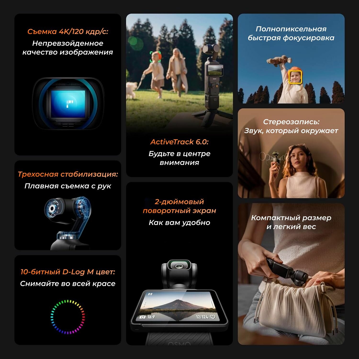 Ниже Вы можете прочитать отзывы на Экшн-камера DJI Osmo Pocket 3 + Lexar 128GB Card, Видеокамера с 1'' CMOS и видео 4K / 120 кадров в секунду,черный, ознакомится с подробными характеристиками, посмотреть интересные обзоры и фотографии на Экшн-камера DJI Osmo Pocket 3 + Lexar 128GB Card, Видеокамера с 1'' CMOS и видео 4K / 120 кадров в секунду,черный.