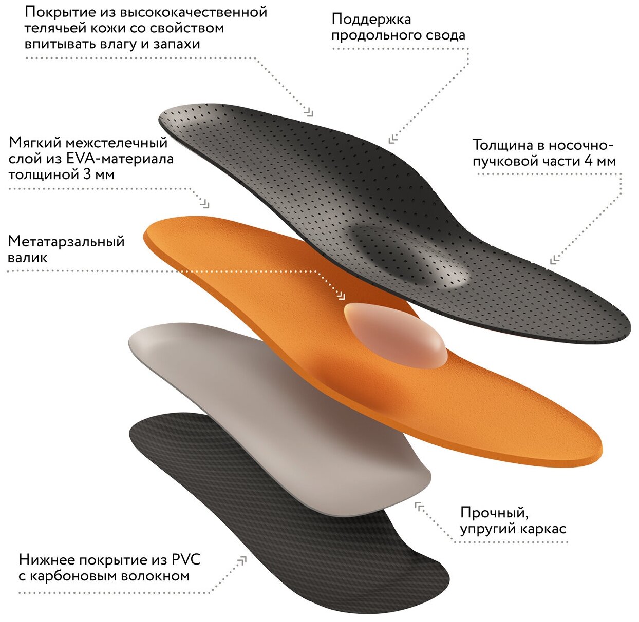 Стельки ортопедические каркасные кожаные Comforma BALANCE Grand Soft С 6104 C 6104, Размер 44, Черный