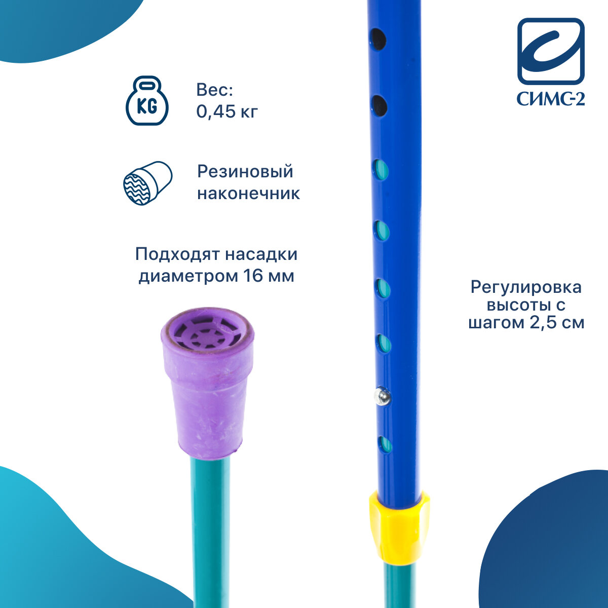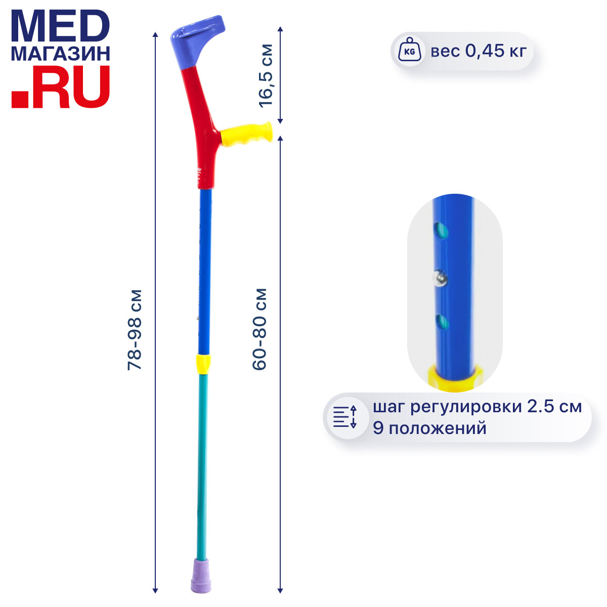 | Дополнительная информация | высота от манжета до ручки - 22 см; высота от ручки до пола - от 77 до 97 см |