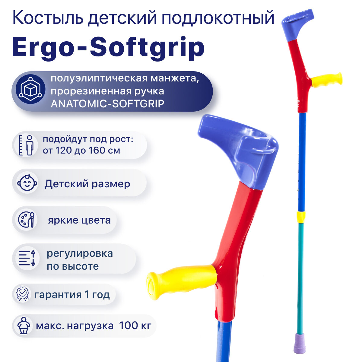 Купить Костыль локтевой детский 222K-Children (Ergo-Softgrip) под рост 120 см-160 см, канадка с опорой под локоть