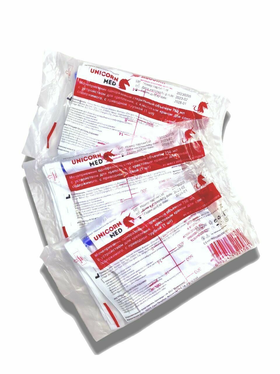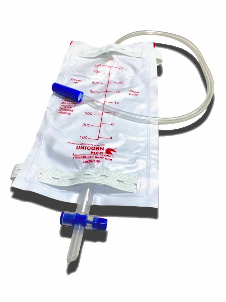 Мочеприемник ножной 750 мл. Unicorn крестовой кран (трубка 65см) - 10 шт