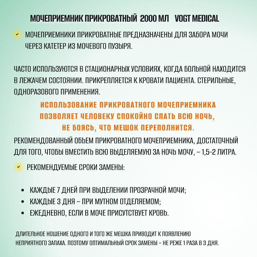 Мочеприемник Vogt Medical прикроватный, сливной клапан, 2 л, 10 штук интересное: