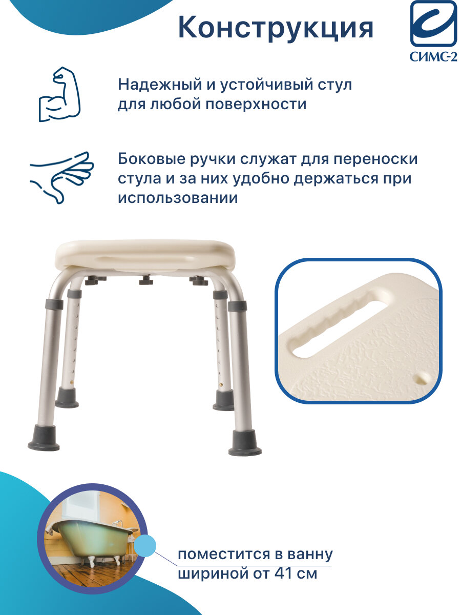 Стул для ванны и душа 10566 для пожилых ослабленных людей и лиц с ограниченными возможностями