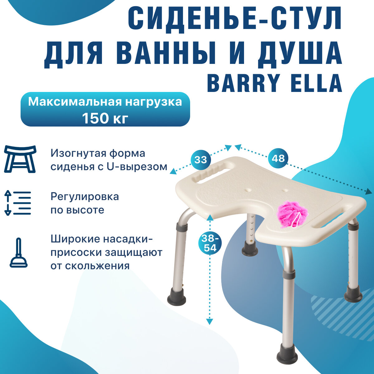 Купить Стул для мытья в ванне и душе (до 150 кг) Barry Ella с регулировкой по высоте для пожилых и ослабленных людей