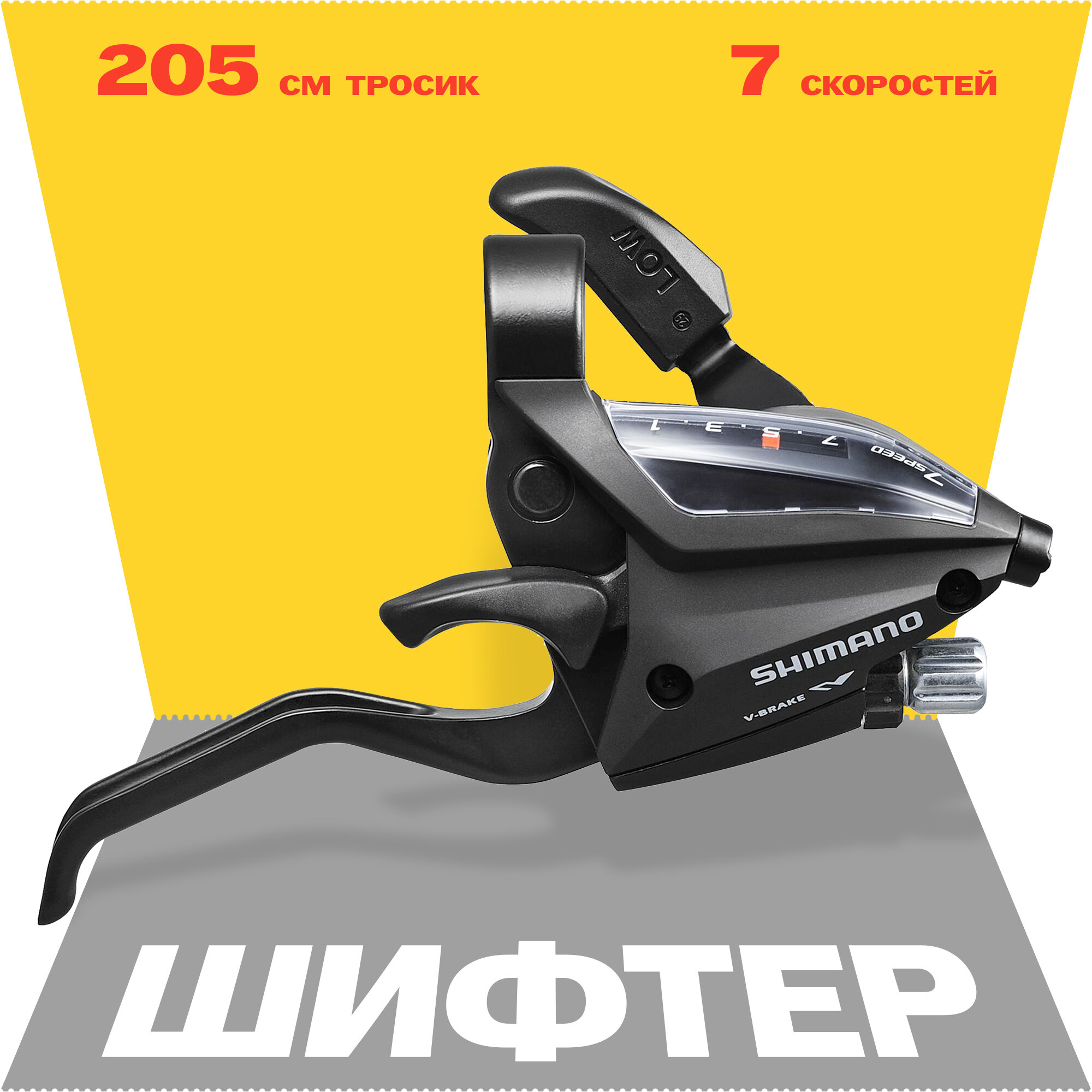 Шифтер, ручка тормоза Shimano ST-EF500, серия Acera, 7 скоростей, под правую руку, трос 205 см, черный