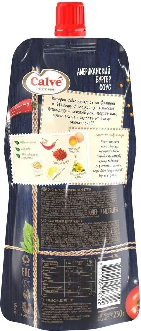 «Calve», cоус «Американский бургер», 3 шт по 230 г интересное: