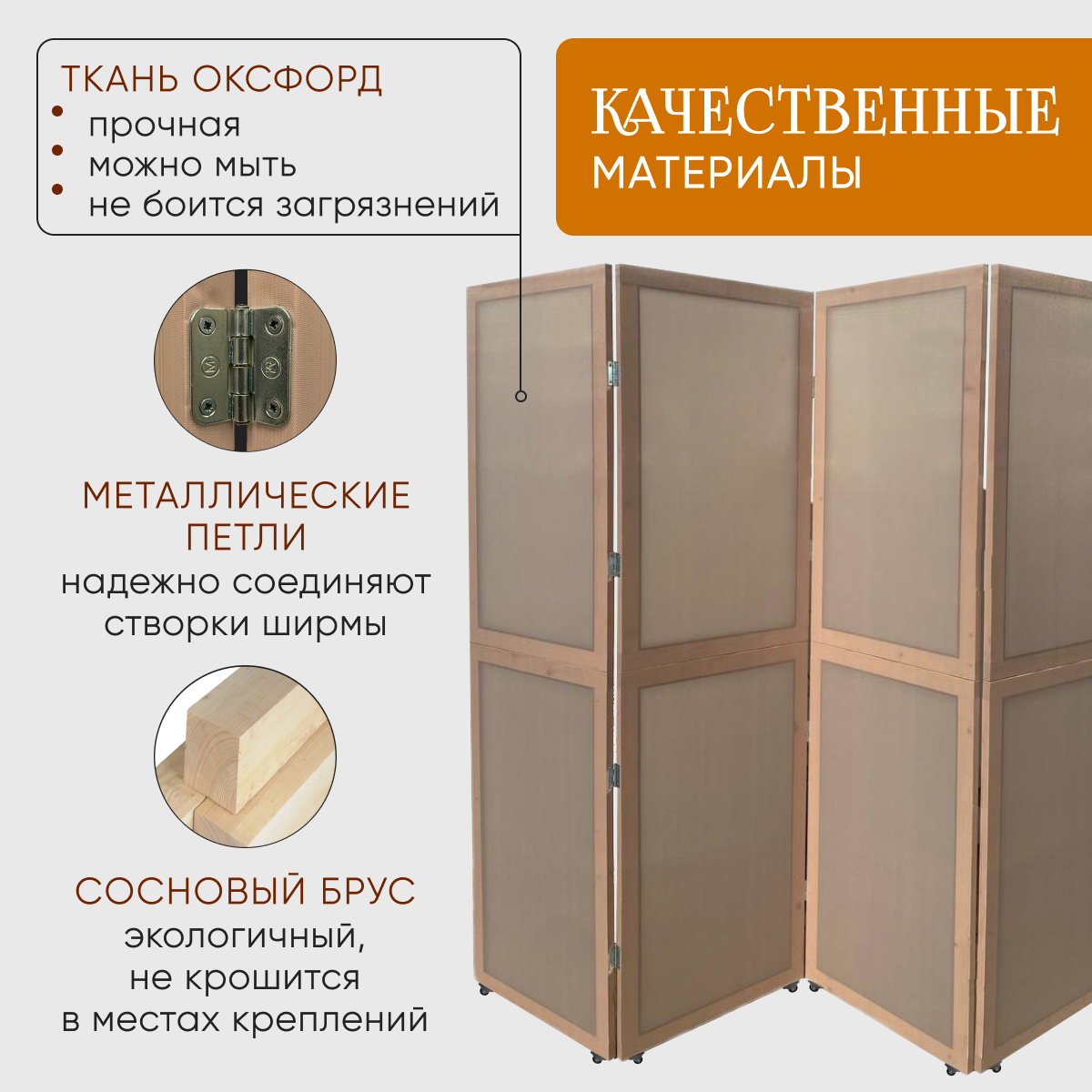 Купить Ширма перегородка для зонирования на колесах Темно Бежевая