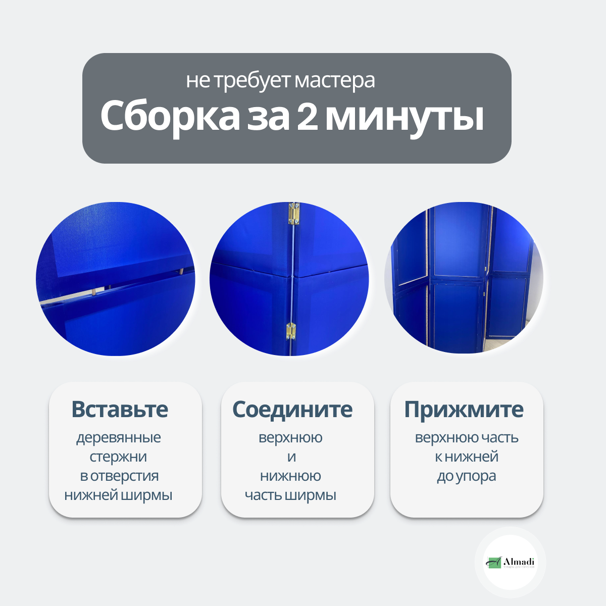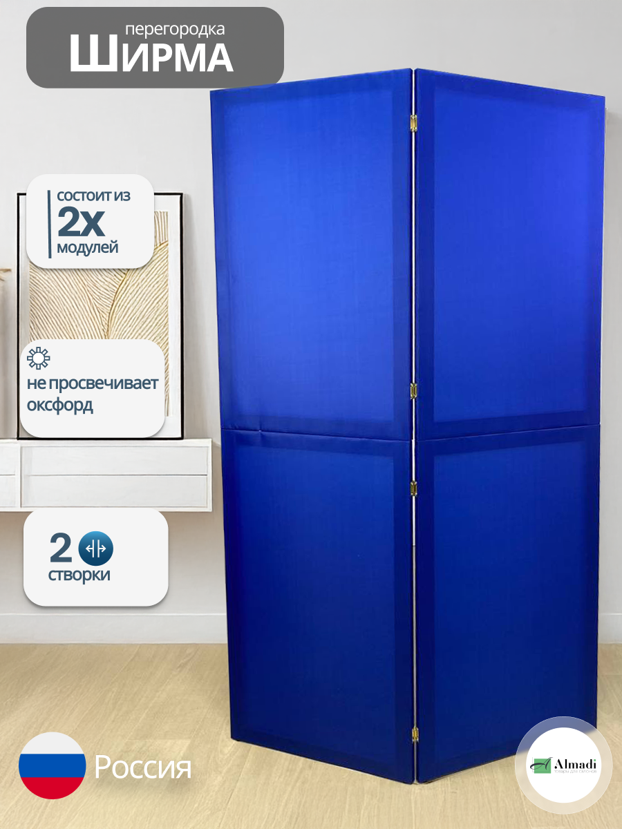 Купить Ширма перегородка для зонирования комнаты синяя 2 створки модульная