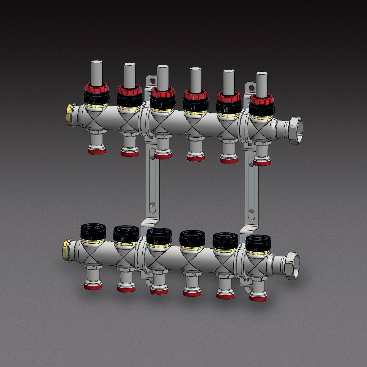 Коллекторный блок из нержавеющей стали 1" с регулирующими и балансировочными клапанами / 5 выходов Valfex арт. VF.582.0605