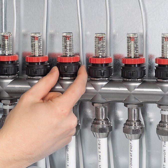 Купить Oventrop Коллектор "Multidis SF" на 5 контуров 1404355 из нерж.стали 1" с регулирующими вставками и расходомерами