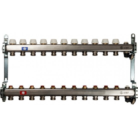 Коллектор сантехнический для водоснабжения, для отопления из нержавеющей стали без расходомеров 12 выходов STOUT SMS-0932-000012