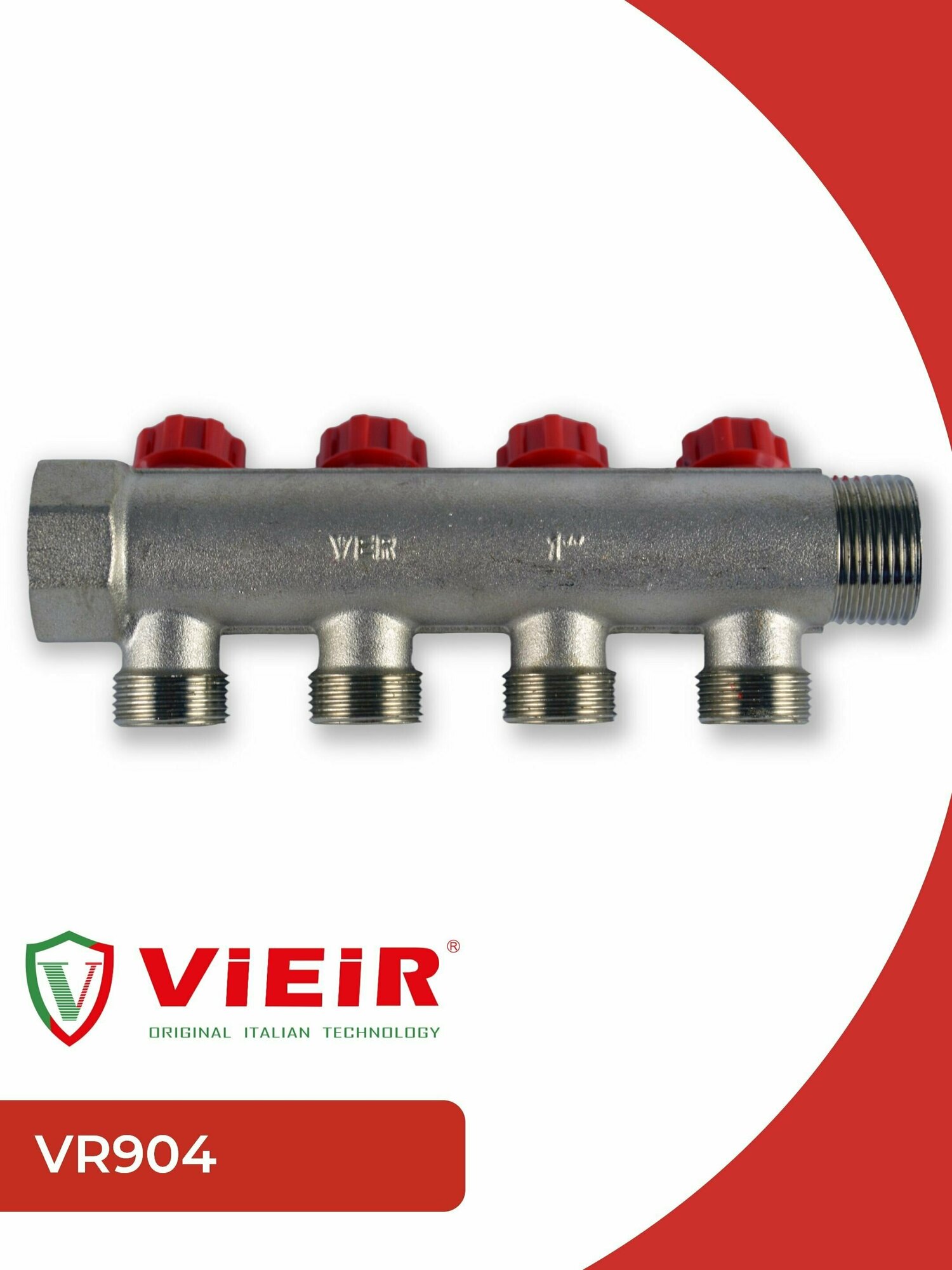 Купить Коллектор с регулировочными вентилями 1"х3/4" 4 выхода (VR904) ViEiR