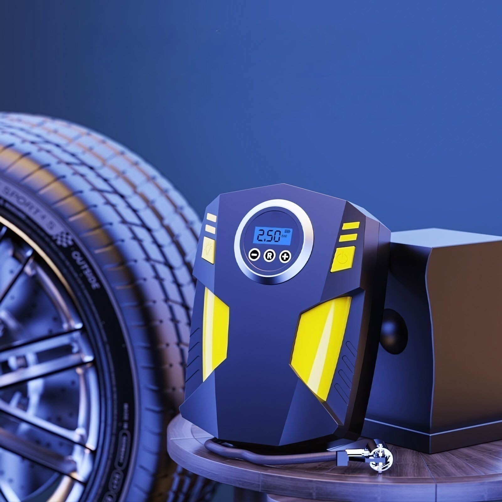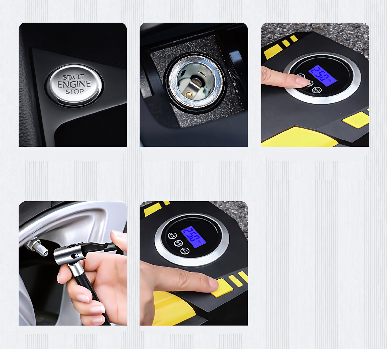 Купить Портативный автомобильный насос с цифровым дисплеем и подсветкой, английская версия, черный/желтый