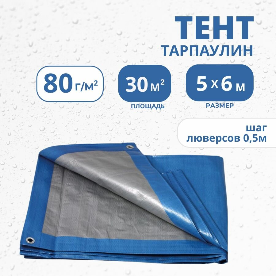 Тент Тарпаулин 80 г/м2 5х6 с люверсами