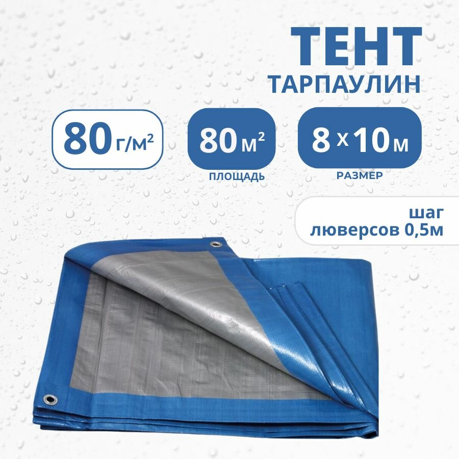 Купить Тент тарпаулин Тарпикс укрывной 8х10м 80 г/м2 с люверсами, баннер, навес, полог туристический, строительный, универсальный, для автомобиля и сада