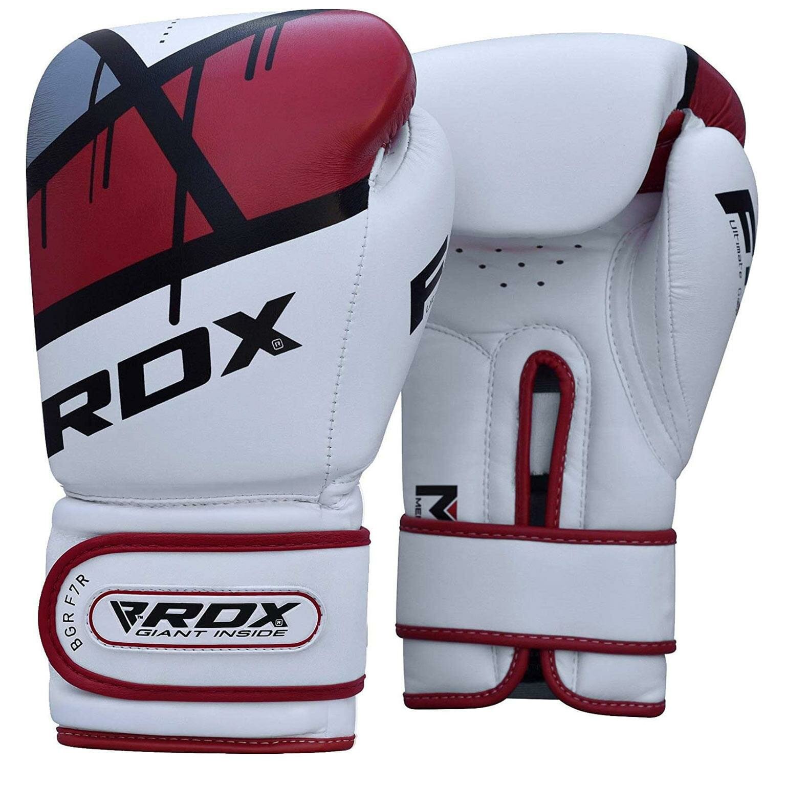 Купить Перчатки боксерские тренировочные RDX BGR-F7 белый/красный, вес 8 унций